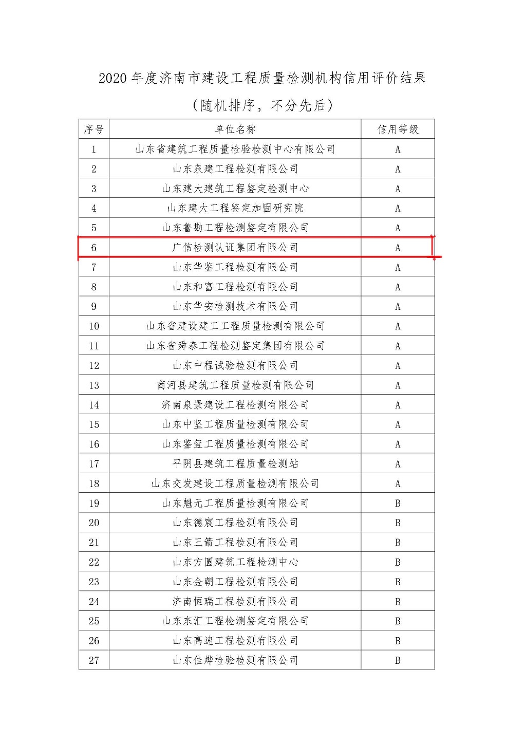 近日,济南市住房和城乡建设局公布了2020年下半年全市建筑市场主体信用评价结果,广信乐鱼网站认证集团荣获2020年下半年全市质量乐鱼网站机构信用评价获得AAA荣誉称号。同时,济南市建设工程质量与安全生产协会公布了2020年度济南市建设工程质量乐鱼网站机构信用评价结果,广信乐鱼网站认证集团荣获2020年度济南市建设工程质量乐鱼网站机构信用评价A级乐鱼网站单位。